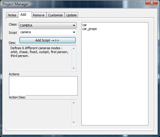 | Update | Update a script from a newer set of templates, without losing the customized parameters. Use this after having downloaded an update from the Gamestudio website or forum. |