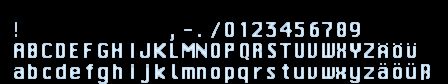 4 rows, 128 characters font bitmap with German umlauts