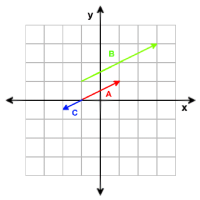 Note that vector A and vector C are the same because they have the same magnitude and direction. A vector is NOT defined by its starting point; in fact it doesn't have one.