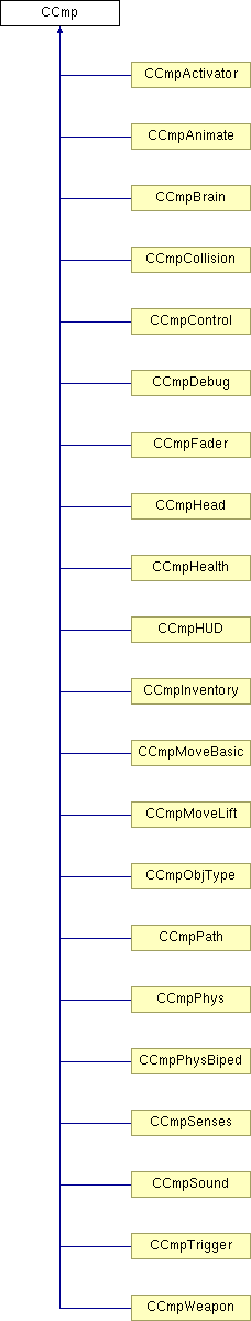Implemented in CCmpActivator, CCmpAnimate, CCmpBrain, CCmpCollision, CCmpControl, CCmpDebug, CCmpFader, CCmpHead, CCmpHealth, CCmpHUD, CCmpInventory, CCmpMoveBasic, CCmpMoveLift, CCmpObjType, CCmpPath, CCmpPhys, CCmpPhysBiped, CCmpSenses, CCmpSound, CCmpTrigger, and CCmpWeapon.