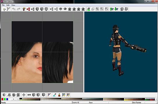 The selected mesh group is displayed on the skin texture with bright lines. You can simultaneously select faces in the 3D Editor and the Skin Editor.